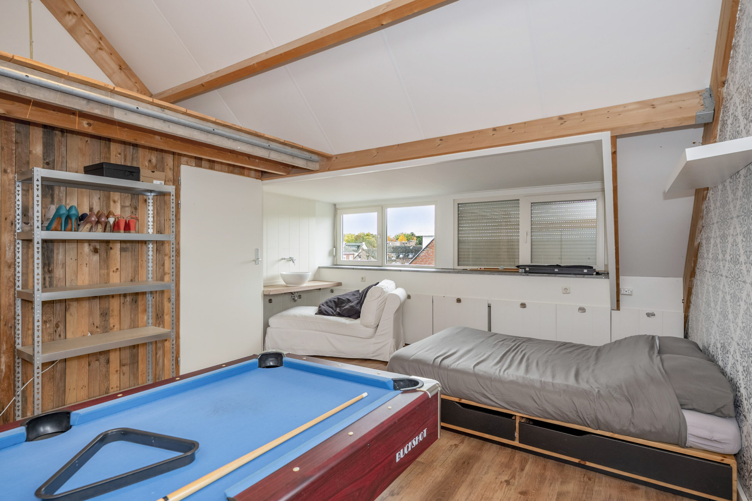 Zolderkamer (ca. 24 m²) met dakkapel (2011) en vliering welke dient als 3e slaapkamer. De slaapkamer is voorzien van een wastafel en aparte ruimte voor witgoedaansluitingen.