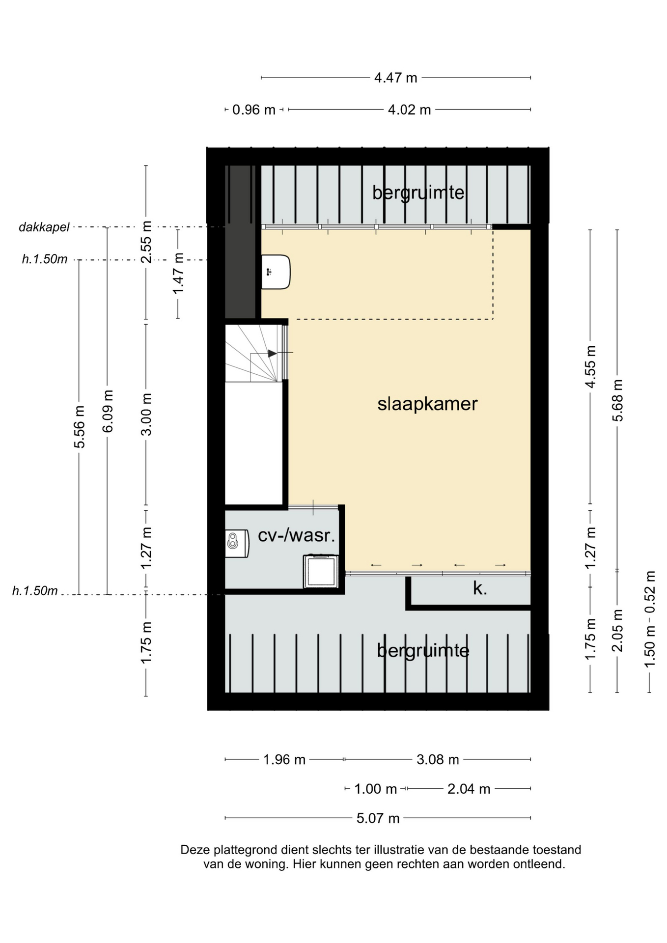 – Slaapkamer 2: afmeting ca. 3,57/2,45 x 5,09m.