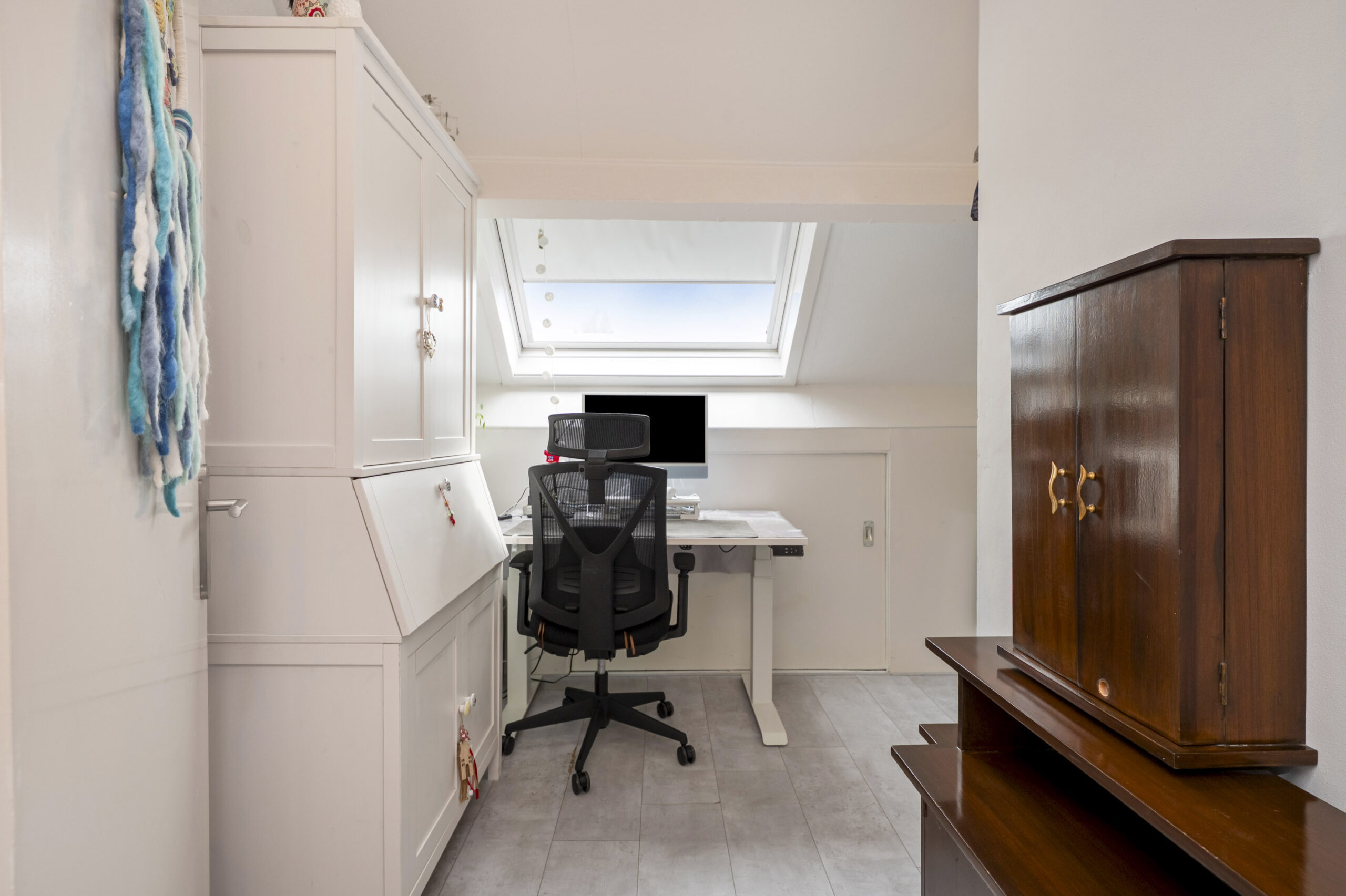 Verrassend is de ruimte op de tweede verdieping, met twee slaapkamers en twee bergingen. De sfeervolle master bedroom met airco is aan de voorzijde en de slaapkamer aan de achterzijde, met toegang tot een van de bergingen, is in gebruik als werkkamer. Ook in deze kamers ligt laminaat op de vloer, waardoor je al snel kunt beginnen met inrichten.