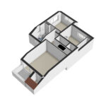 Een vlizotrap geeft toegang tot de bergzolder, in de nok van deze verrassende woning. Het is mogelijk om hier een extra slaapkamer te realiseren.