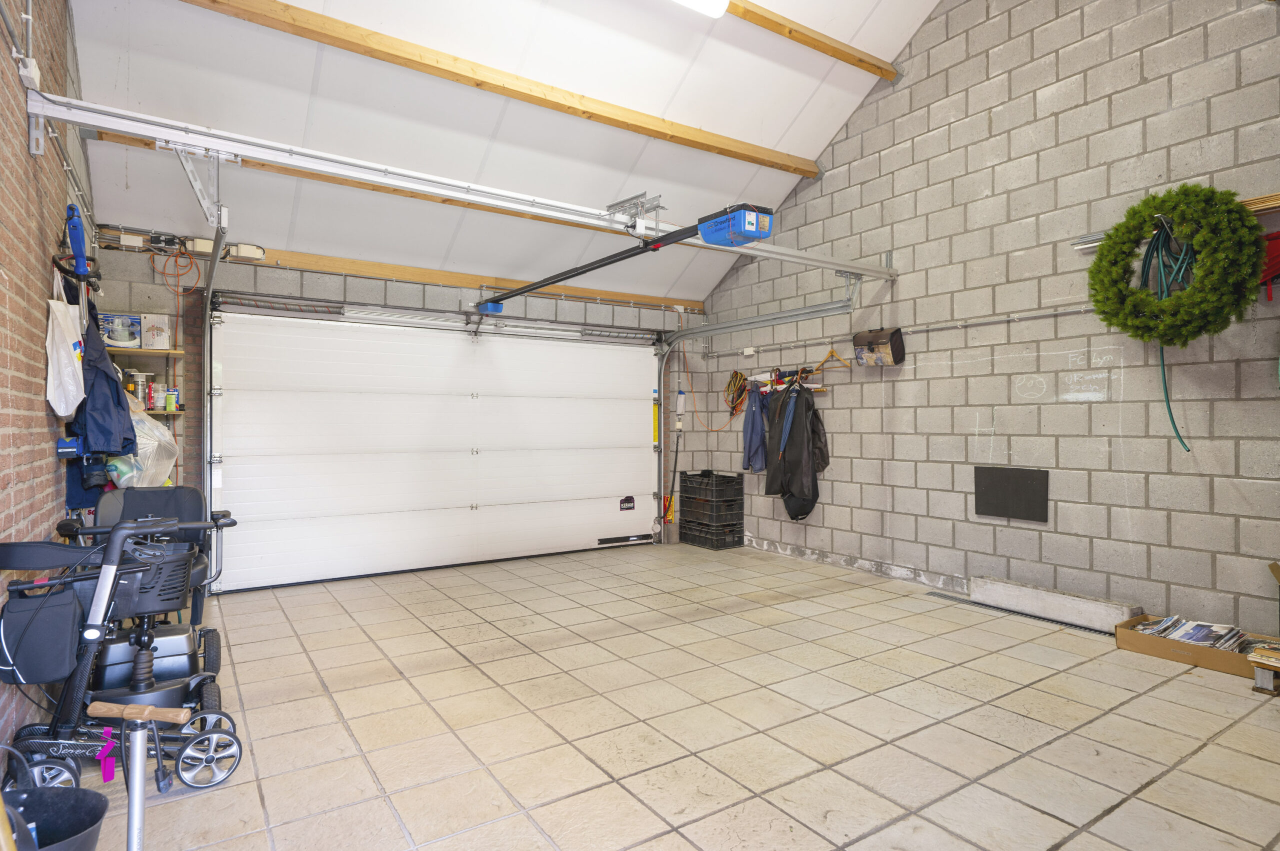Een van de unieke kenmerken van deze woning is de in spouw gebouwde garage van circa 34 m2, met een brede sectionaalpoort aan de voorzijde en een deur naar de achtertuin. Het dak van de garage is geïsoleerd, de garagepoort is met een druk op de knop te openen en er ligt een plavuizen vloer.