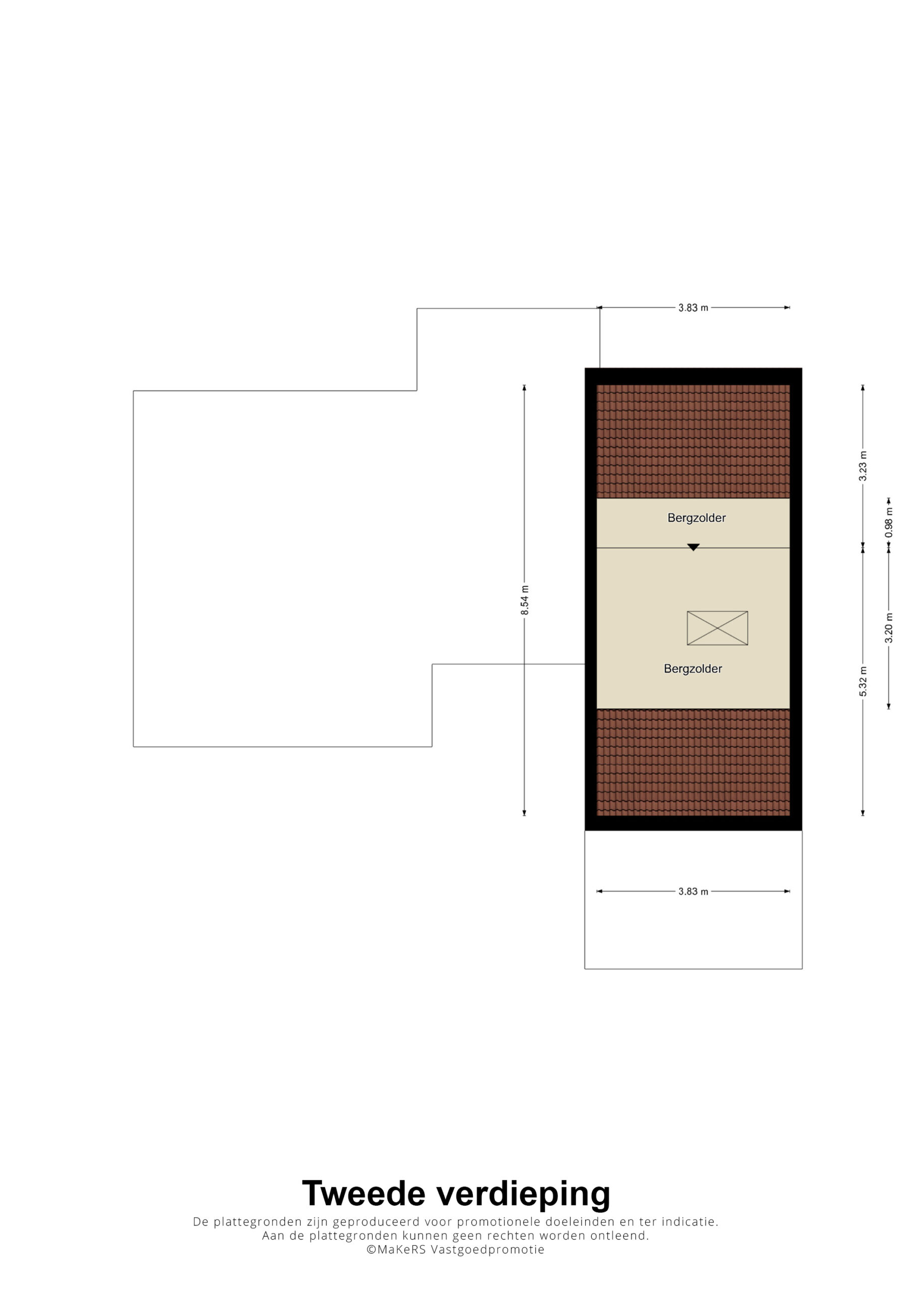 Een vlizotrap geeft toegang tot de bergzolder, in de nok van deze verrassende woning. Het is mogelijk om hier een extra slaapkamer te realiseren.