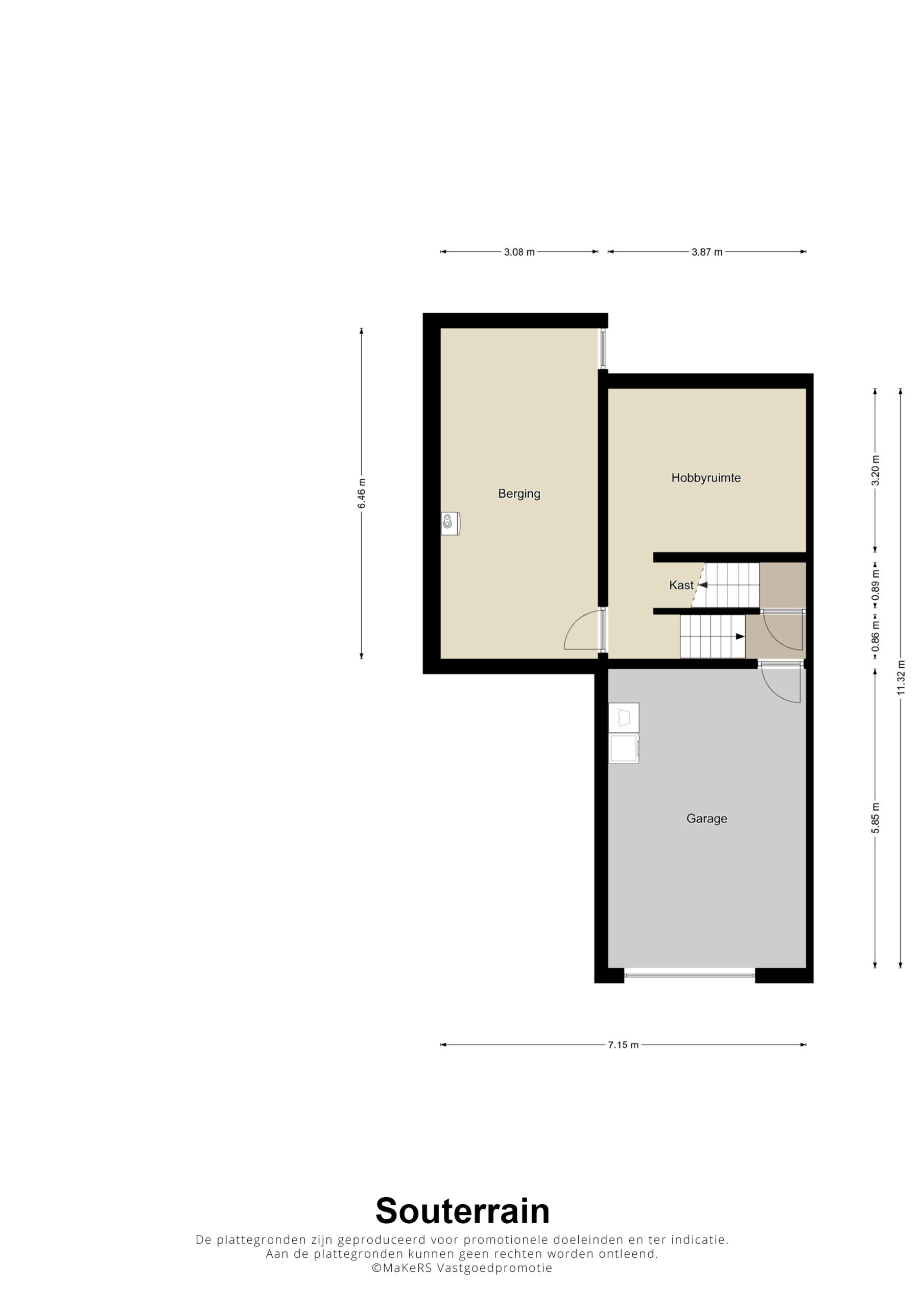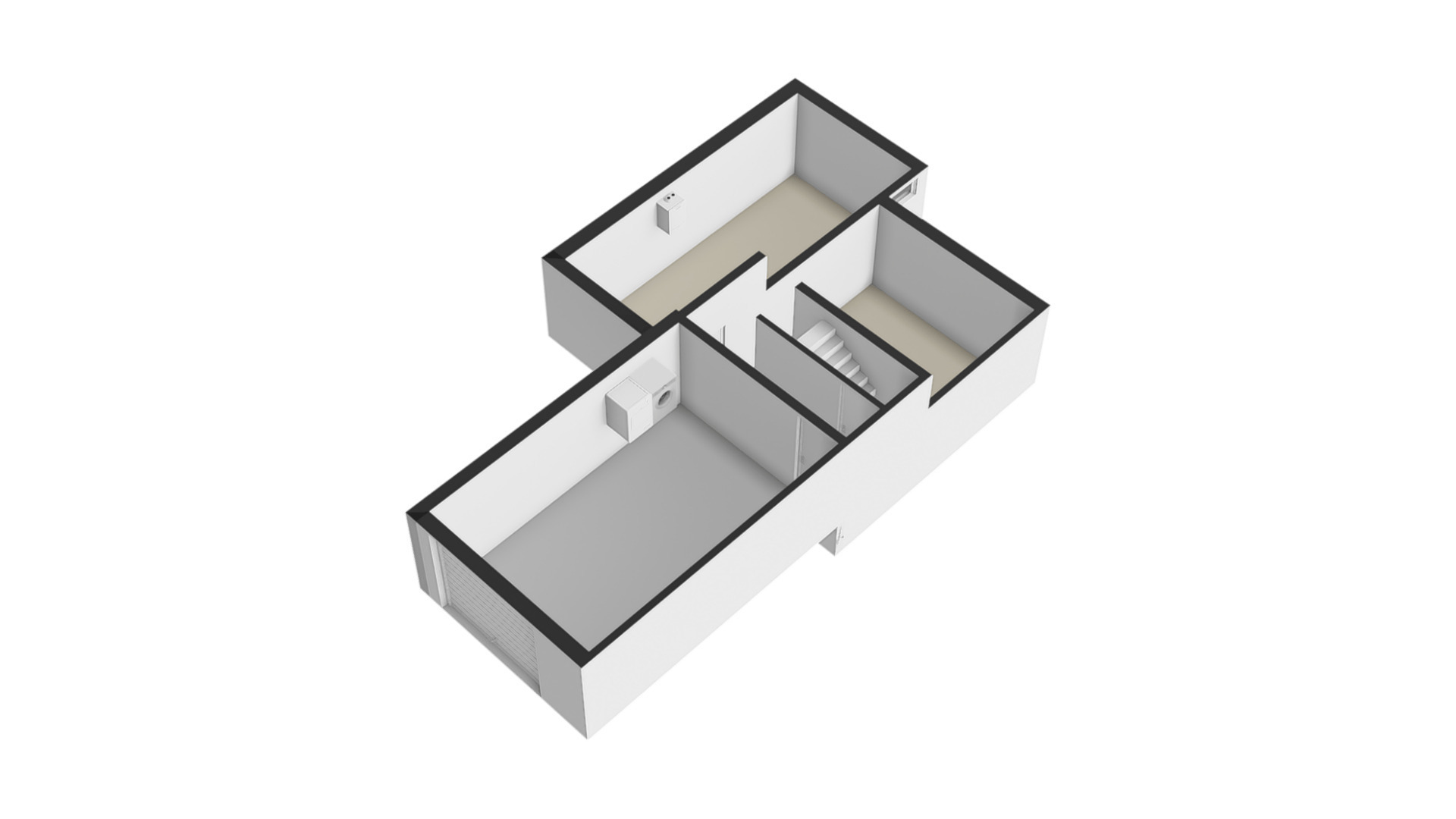 Het souterrain bestaat uit een garage, een hobbyruimte en een berging/provisieruimte. In de inpandige garage is de opstelling van de wasapparatuur en de hobbyruimte wordt als sportruimte gebruikt. Wat opvalt is de hoogte, niet alleen hier maar in het hele souterrain.