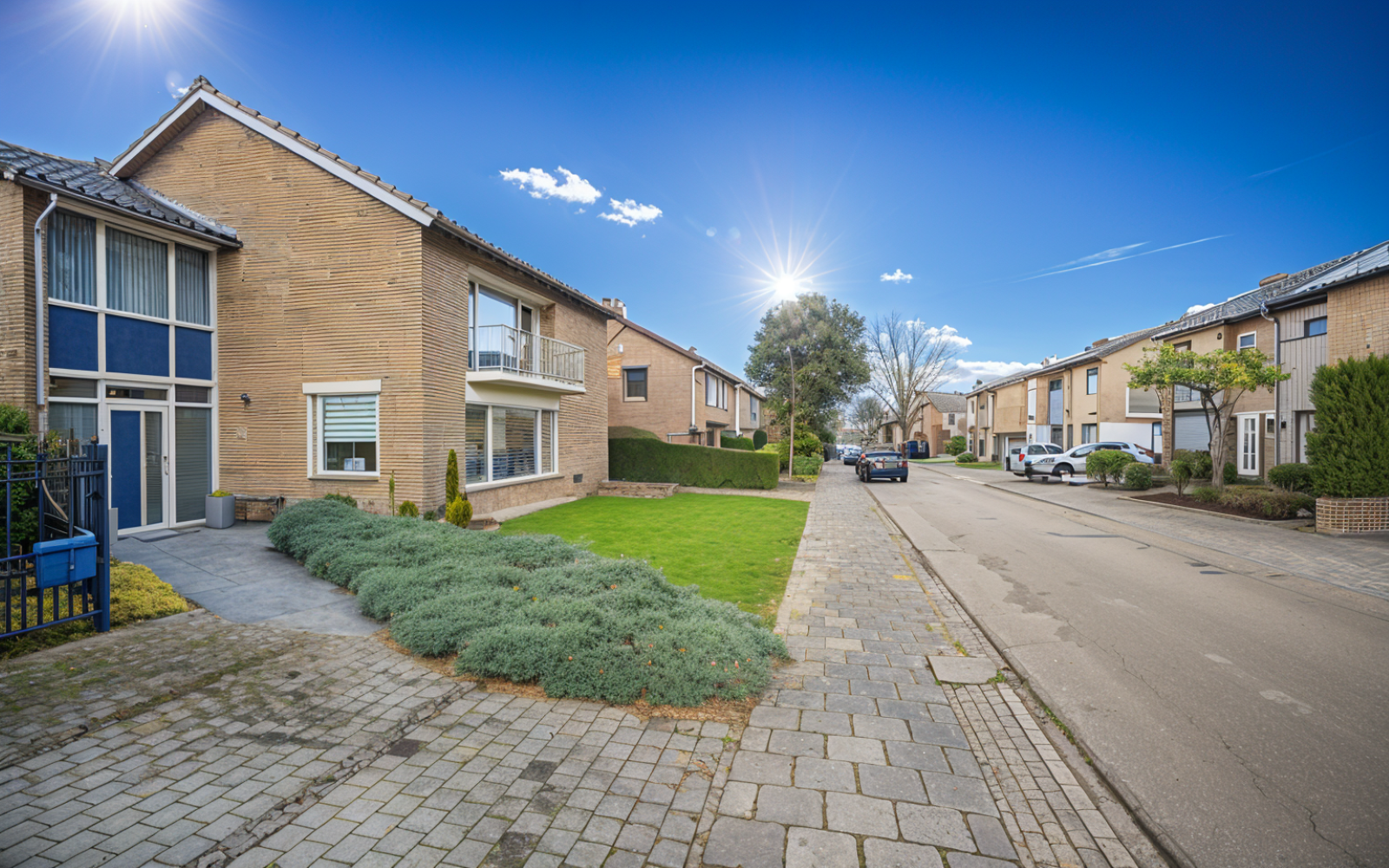 Deze vrijstaande woning staat op een perceel van maar liefst 627 m2, met een royale tuin aan drie zijden. Aan weerszijden van de voortuin is een oprit, waardoor er op eigen terrein parkeergelegenheid voor meerdere auto’s is. Bij de oprit aan de linkerzijde is een achterom met dubbele poort, richting de zijtuin (zuid) en de achtertuin (west).