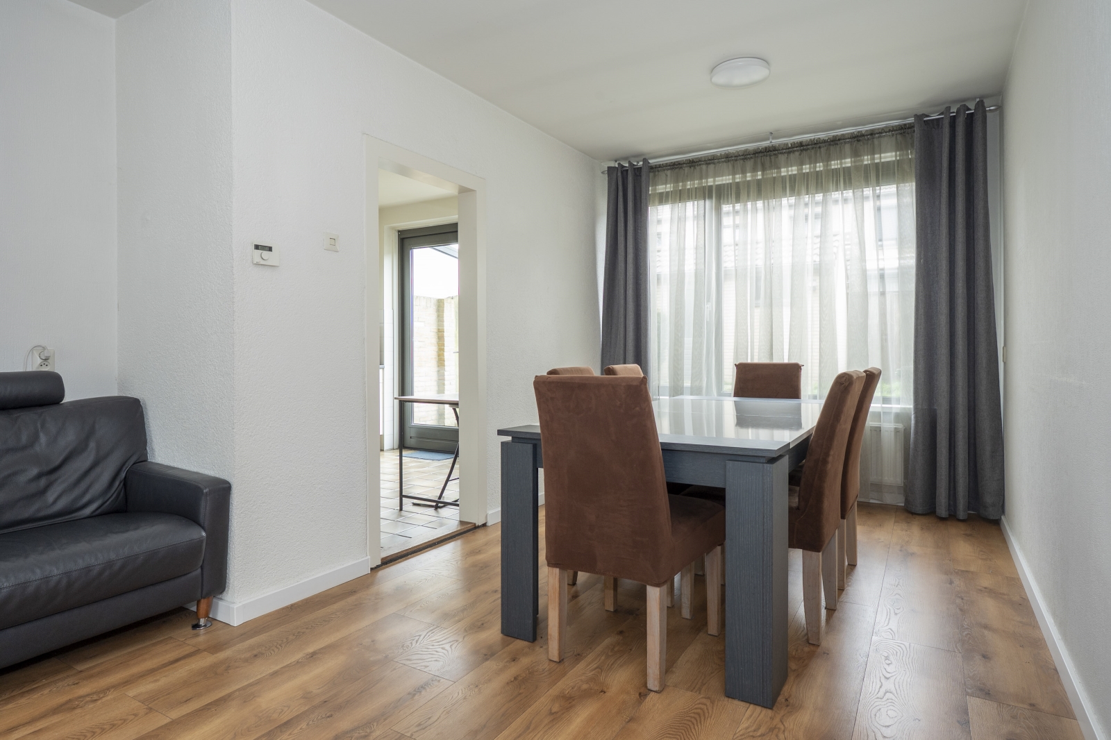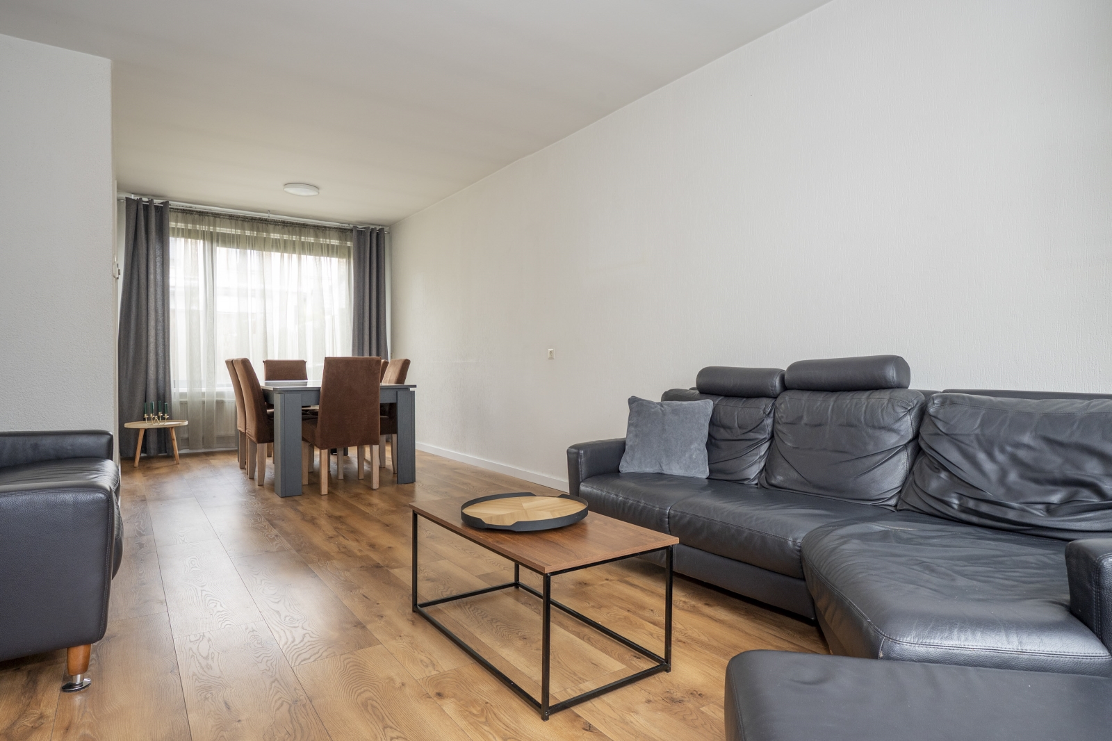 De ruime doorzonwoonkamer en keuken vormen samen het hart van het huis, met volop licht en ruimte voor een gezellige leefomgeving.