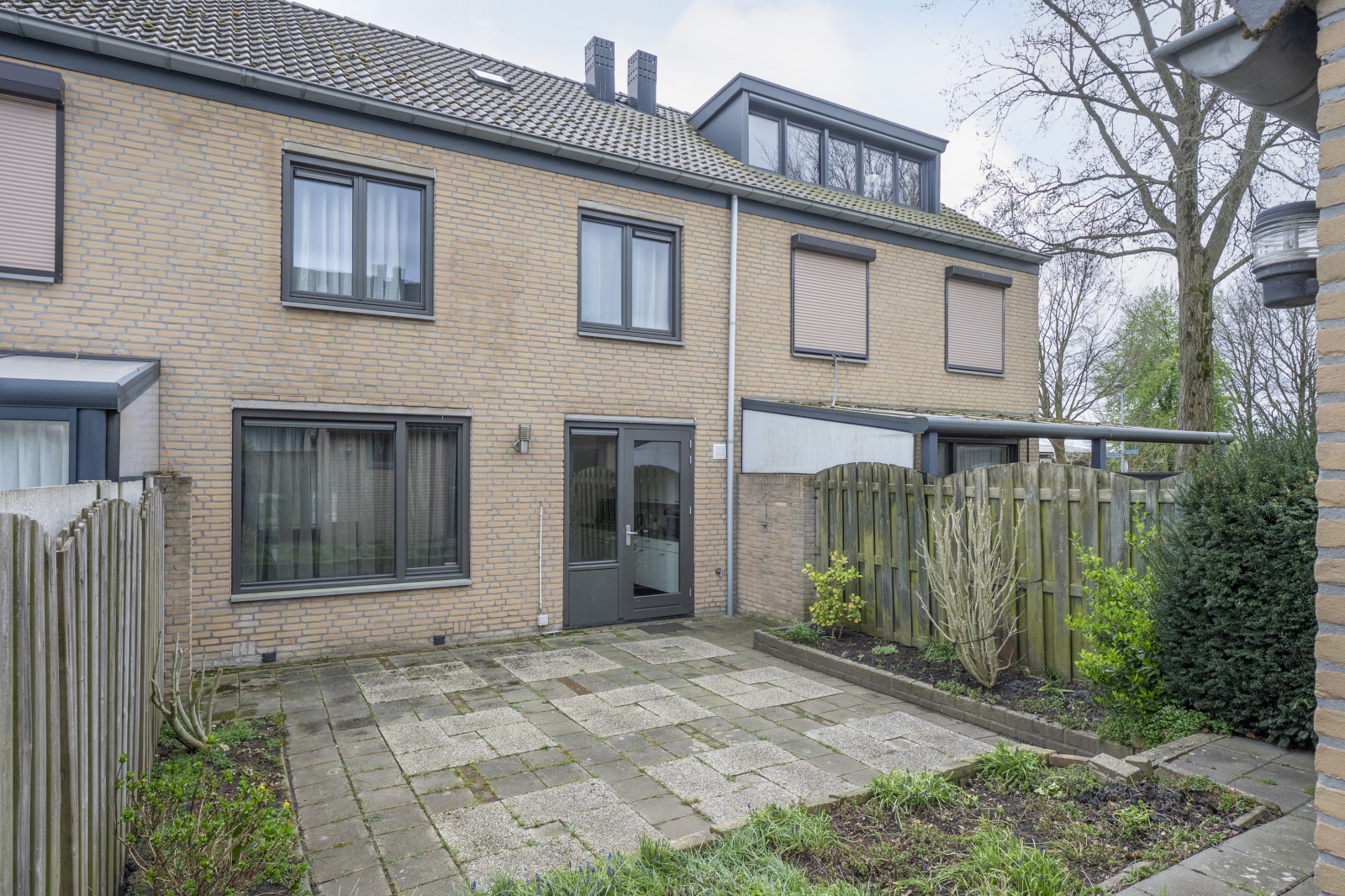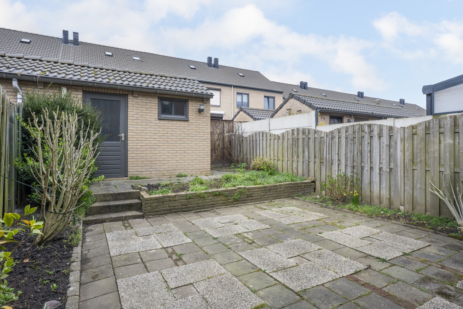 – Onderhoudsvriendelijke achtertuin met stenen buitenberging en achterom;