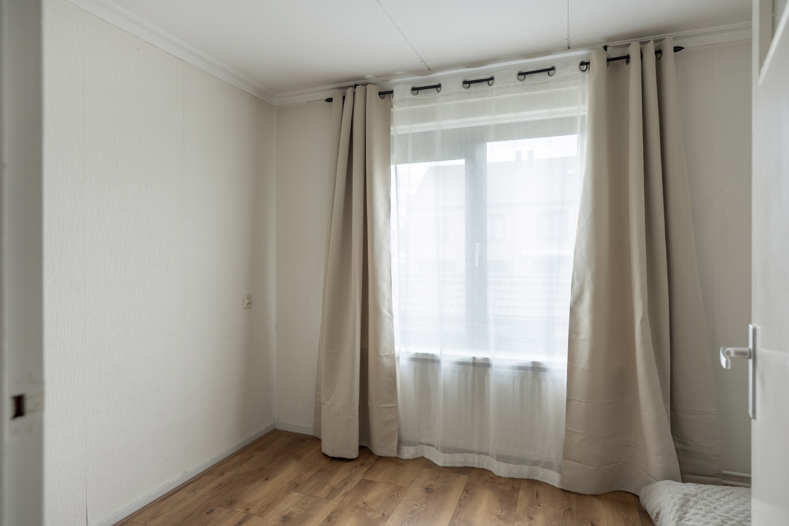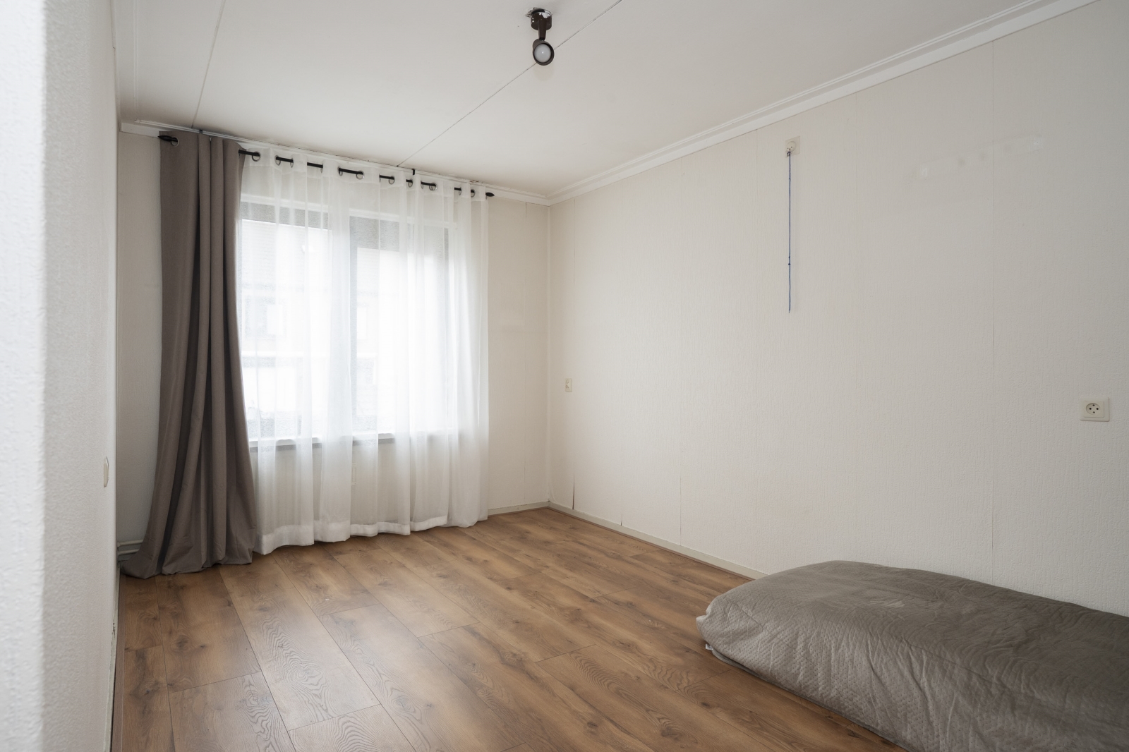 Slaapkamer 1 (ca. 13m²) is aan de voorzijde van de woning gelegen en is voorzien van een laminaatvloer en hardhouten kozijnen met isolerende beglazing.