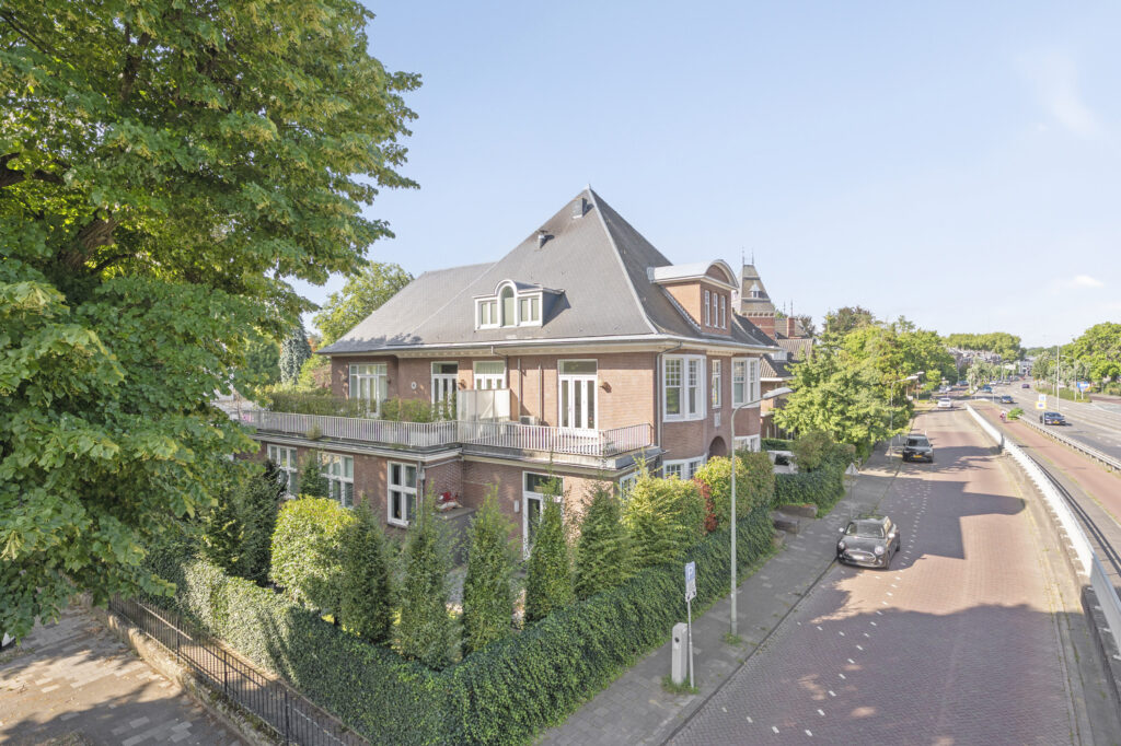 Aan de kant van de Prins Bisschopsingel is de statige entree van de villa, die is gesplitst in unieke en comfortabele appartementen. Achter de hardhouten voordeur is de hal, met een marmeren vloer en de originele lambrisering. Uw oog valt op het trappenhuis en de lift, de algehele fraaie afwerking en de goede lichtinval.