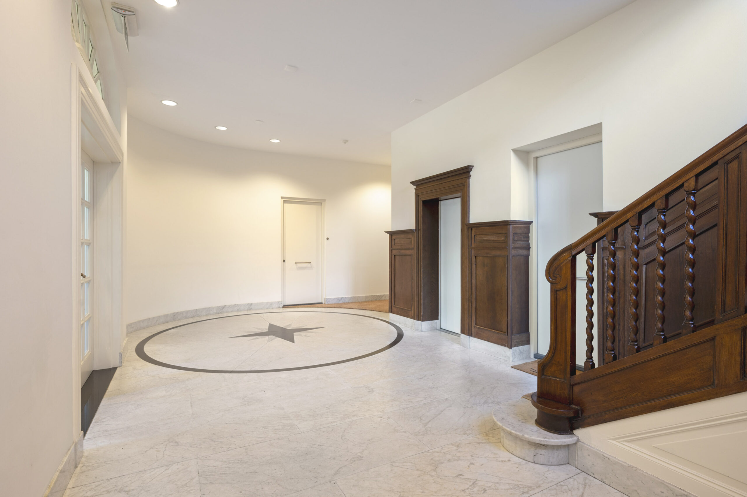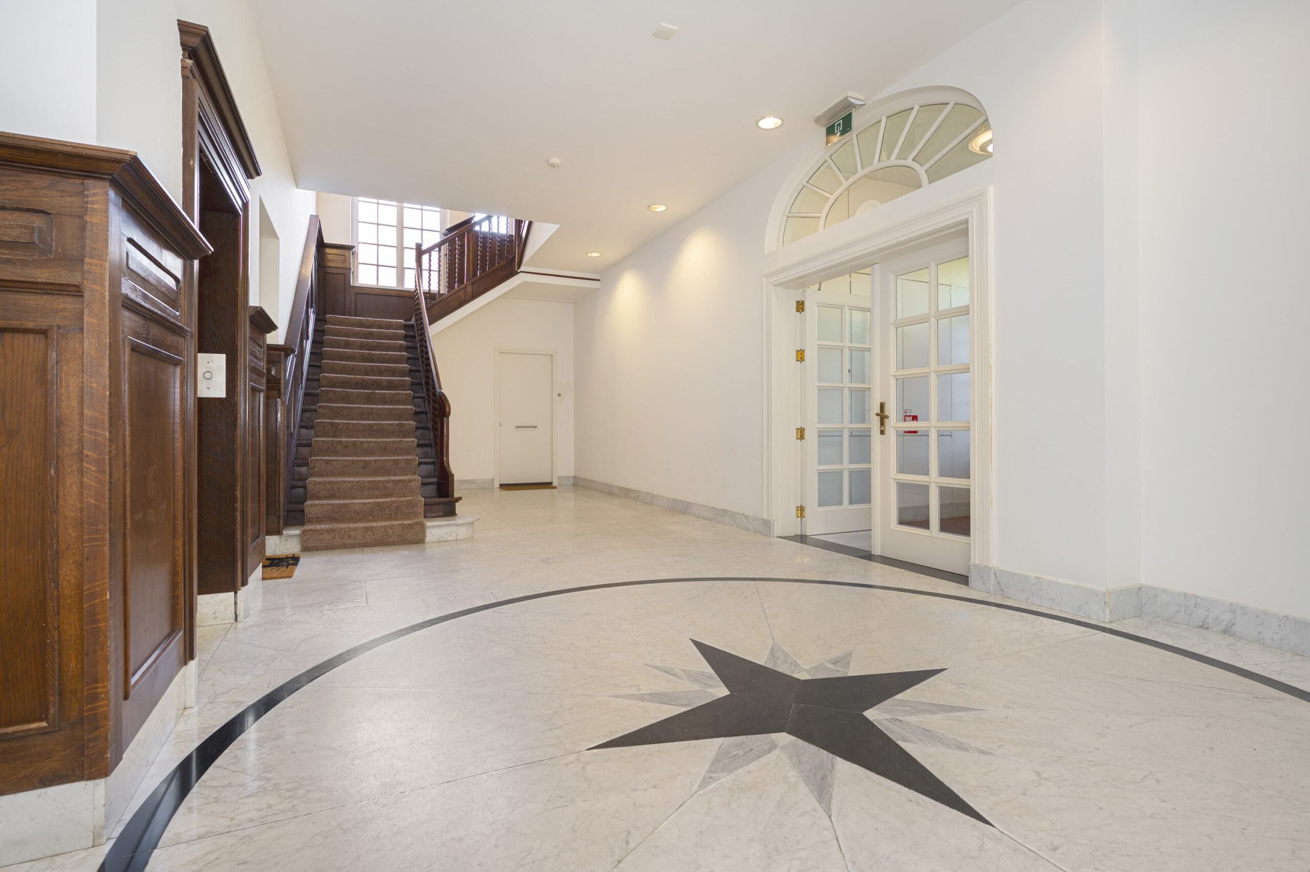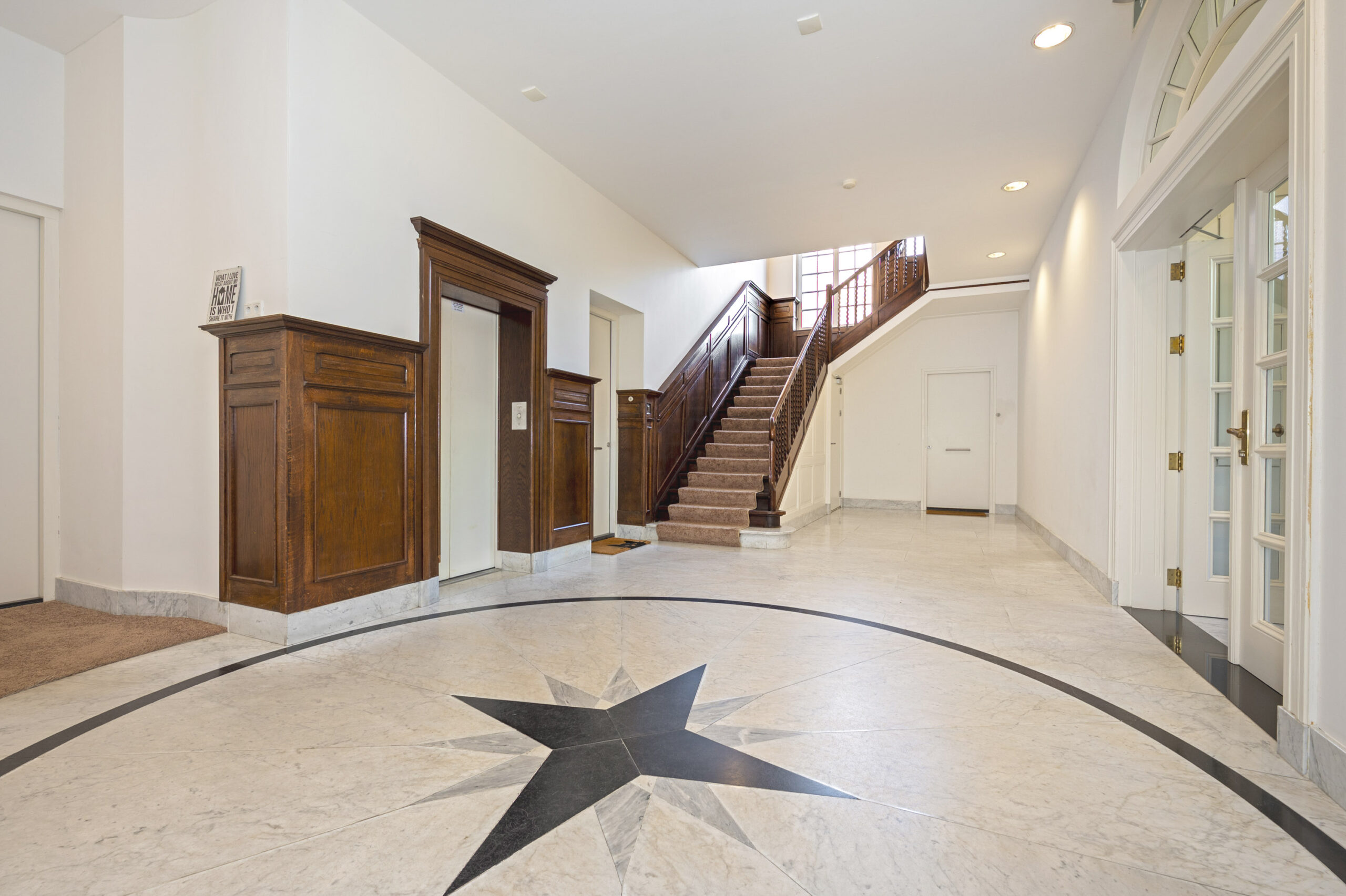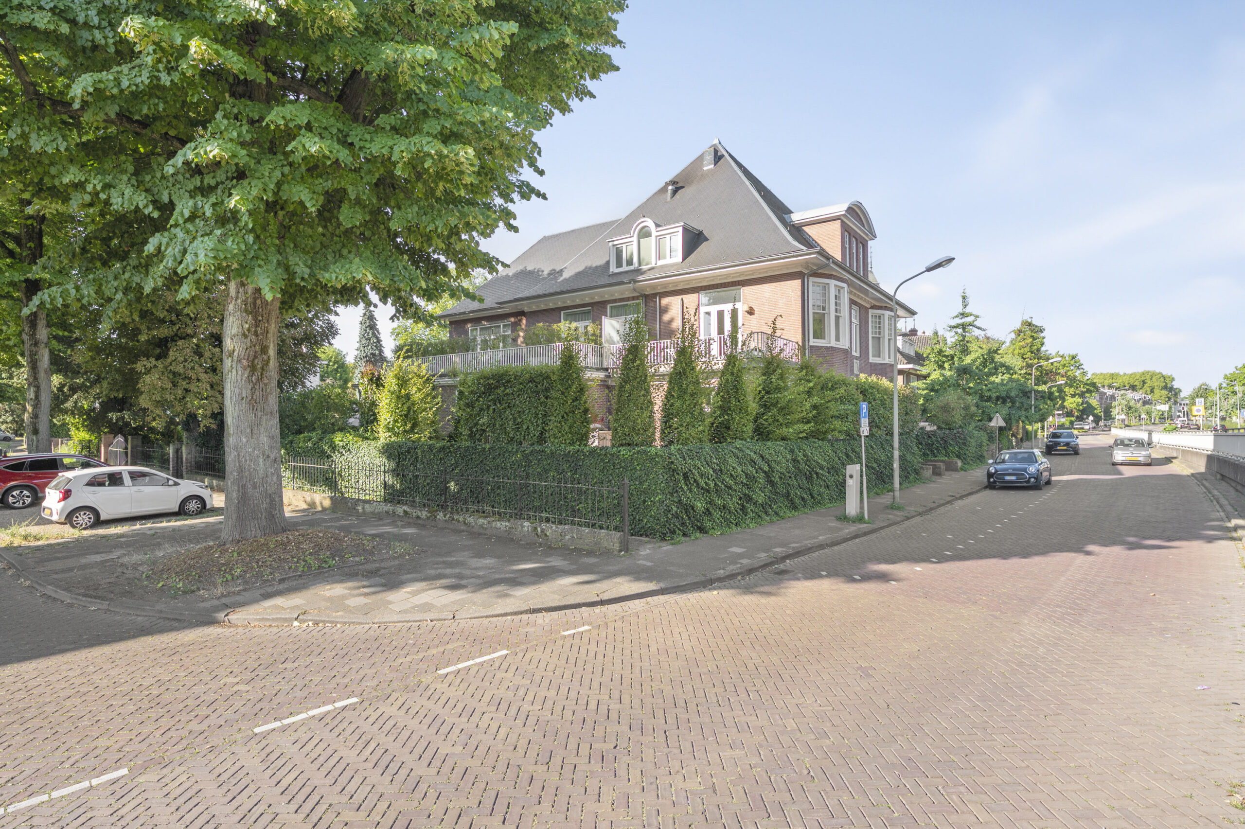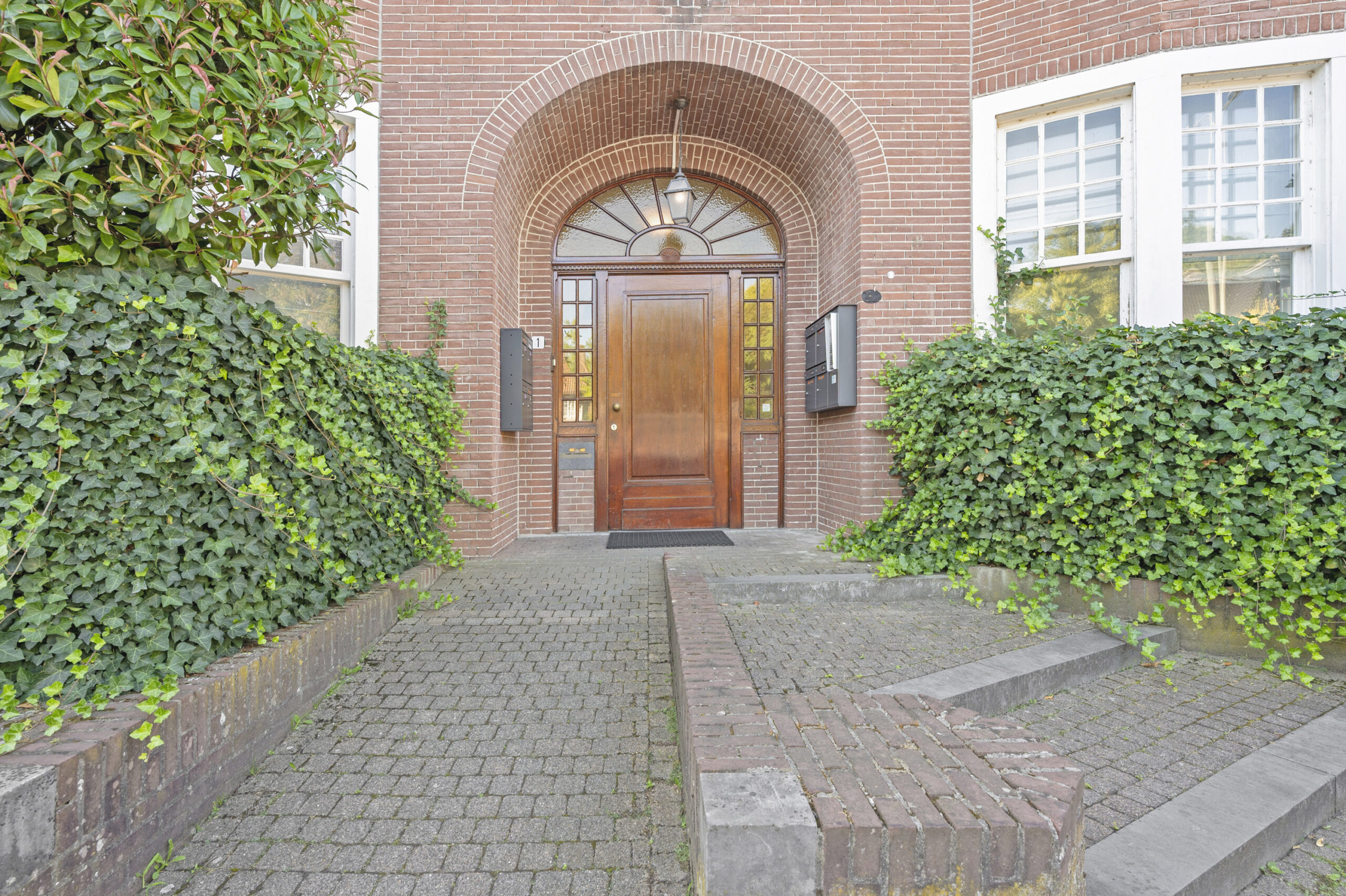 Aan de kant van de Prins Bisschopsingel is de statige entree van de villa, die is gesplitst in unieke en comfortabele appartementen. Achter de hardhouten voordeur is de hal, met een marmeren vloer en de originele lambrisering. Uw oog valt op het trappenhuis en de lift, de algehele fraaie afwerking en de goede lichtinval.